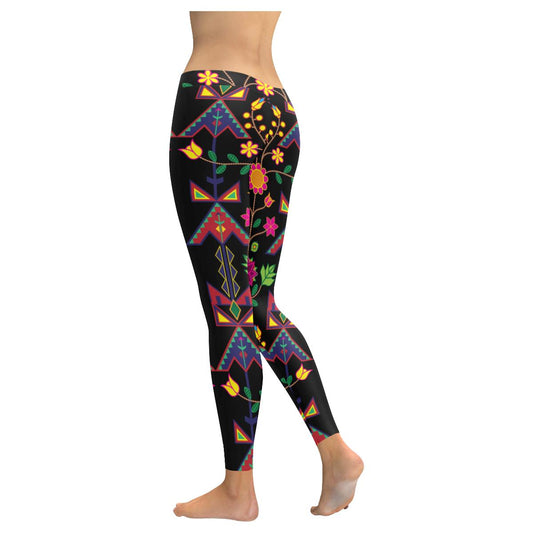 Geometric Floral Spring - Black Low Rise Leggings (Invisible Stitch)
