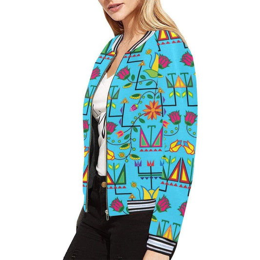 Geometric Floral Summer - Sky Blue Bomber Jacket for Women