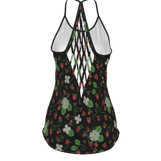 Strawberry Dreams Midnight Criss-Cross Open Back Tank Top