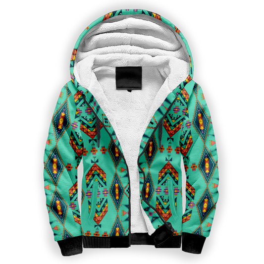 Travois Tipi Smoky Sky Unisex Sherpa Lined Hooded Coat