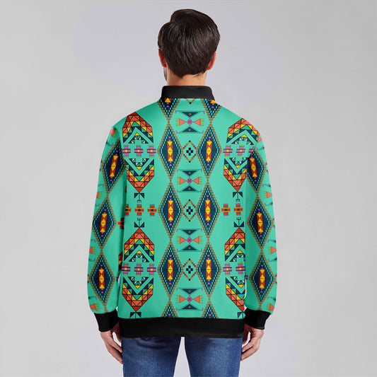 Turquoise Blanket Horizontal Strip Men's Casual Dress Shirt