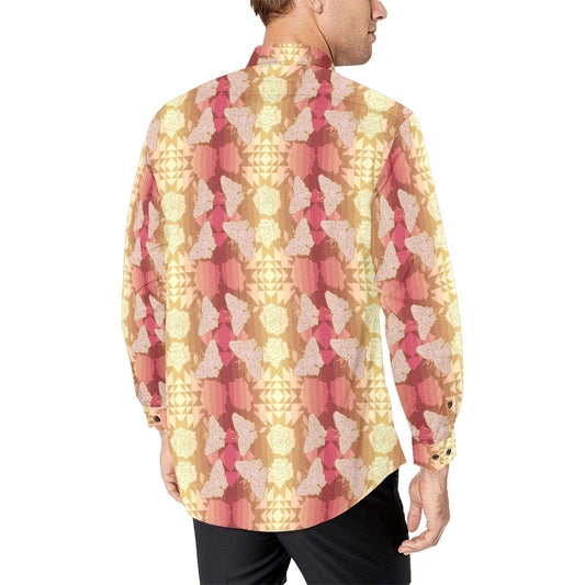Butterfly and Roses on Geometric Men's Casual Dress Shirt