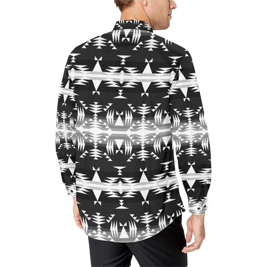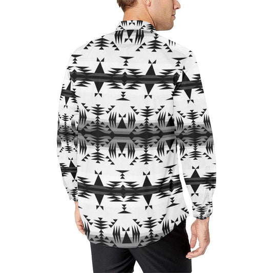 Between the Mountains White and Black Men's Casual Dress Shirt