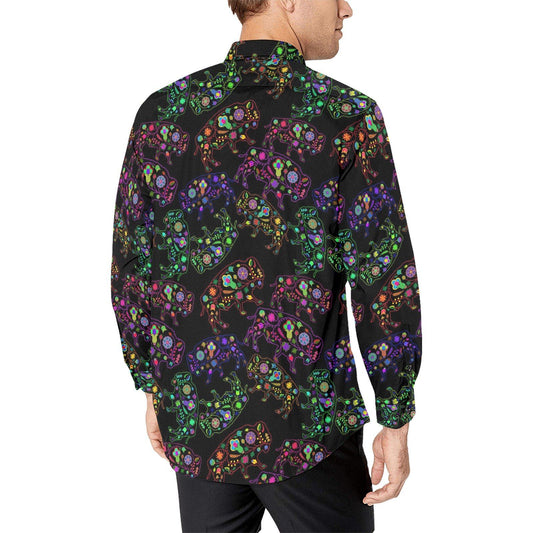 Neon Floral Buffalos Men's Casual Dress Shirt