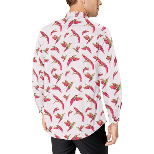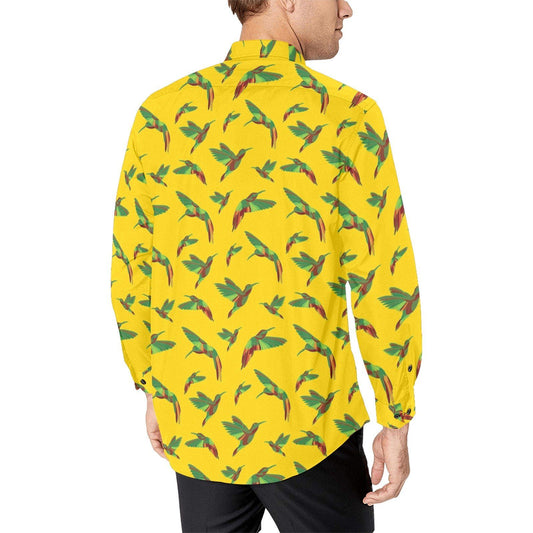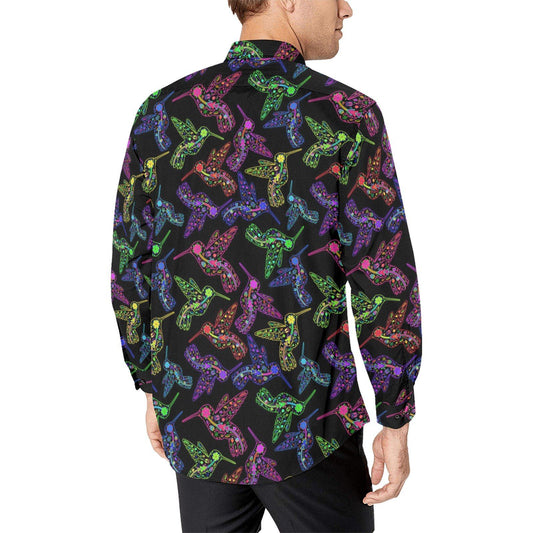 Neon Floral Hummingbirds Men's Casual Dress Shirt