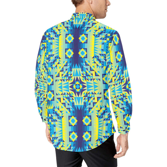 Kaleidoscope Jaune Bleu Men's Casual Dress Shirt