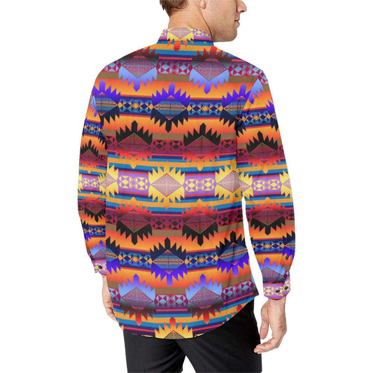 Desert Geo Yellow Red Men's Casual Dress Shirt