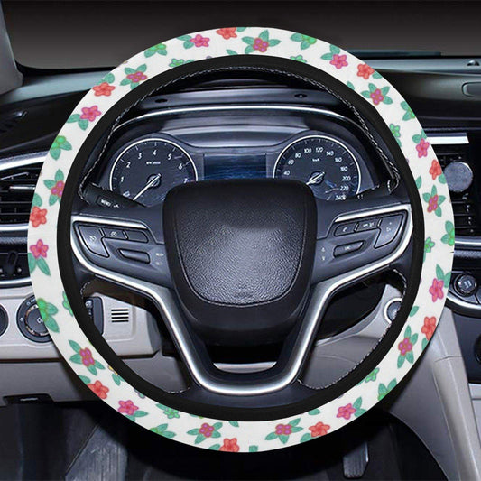 Berry Flowers White Steering Wheel Cover with Elastic Edge
