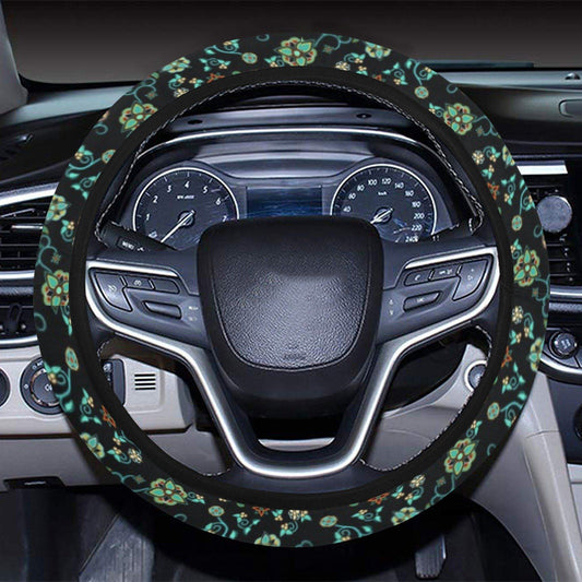 Floral Green Black Steering Wheel Cover with Elastic Edge
