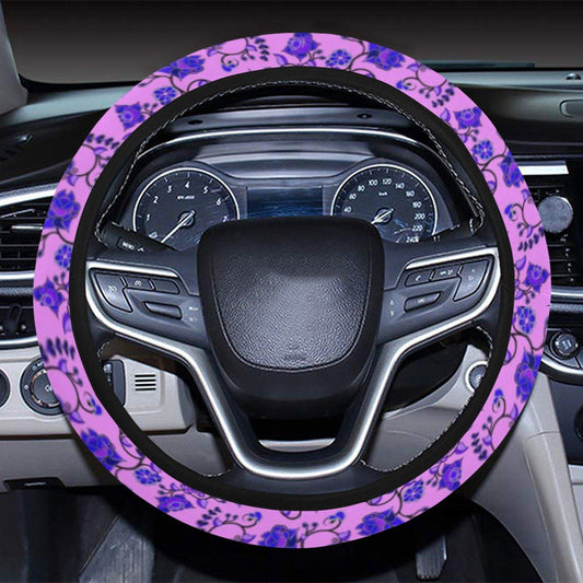 Purple Floral Amour Steering Wheel Cover with Elastic Edge