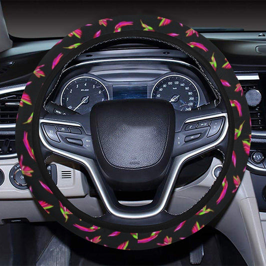 Neon Floral Hummingbirds Steering Wheel Cover with Elastic Edge