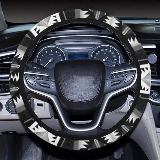 Okotoks Black and White Steering Wheel Cover with Elastic Edge