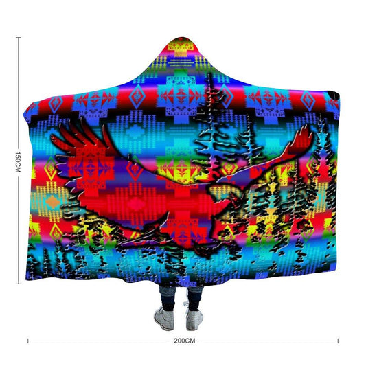 Big Pattern Fire Colors and Turquoise purple Hooded Blanket