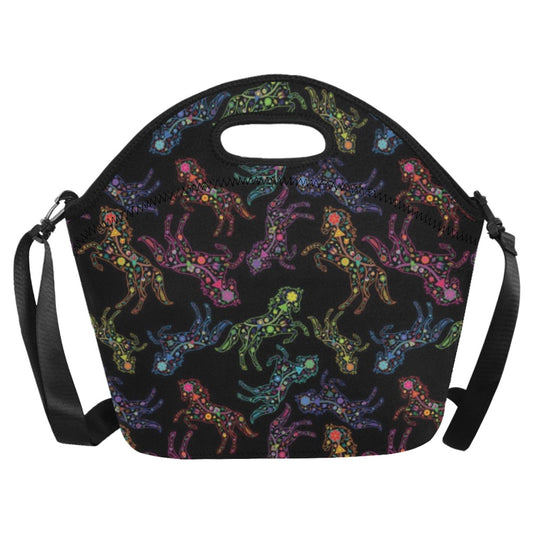Neon Floral Horses Neoprene Lunch Bag/Large