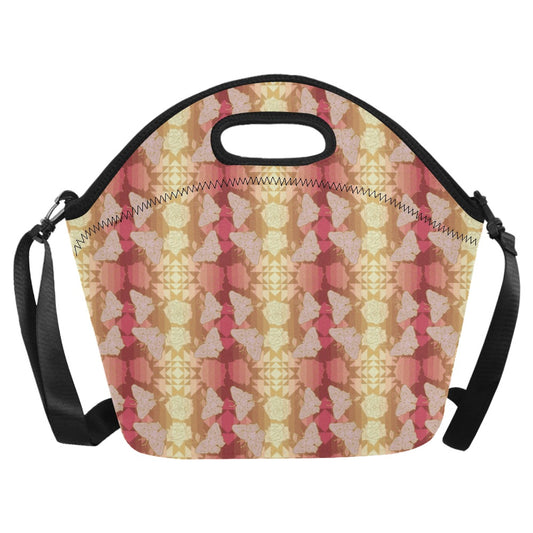Butterfly and Roses on Geometric Neoprene Lunch Bag/Large