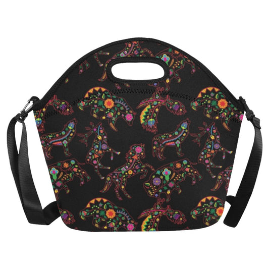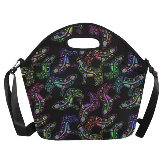 Neon Floral Wolves Neoprene Lunch Bag/Large