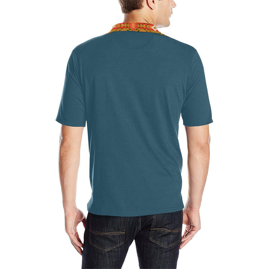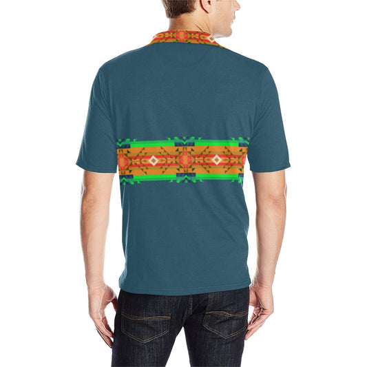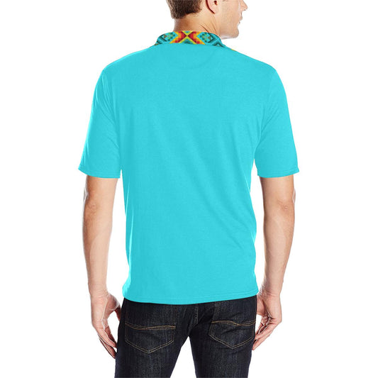 Turquoise Blanket Strip Men's Polo Shirt