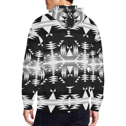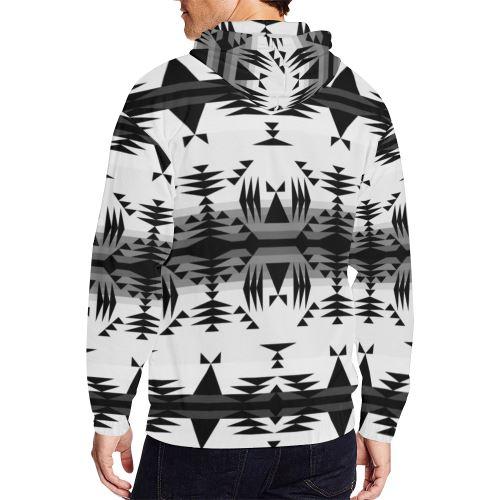 Between the Mountains Black and White Full Zip Hoodie for Men