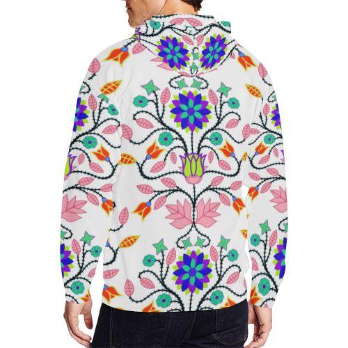 Geometric Floral Spring-White Full Zip Hoodie for Men