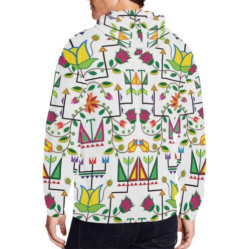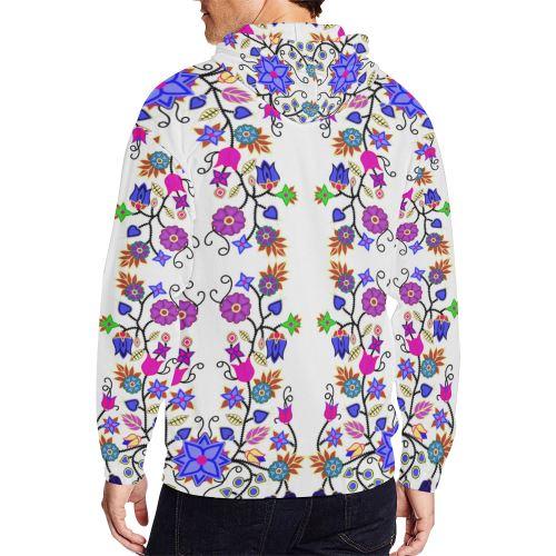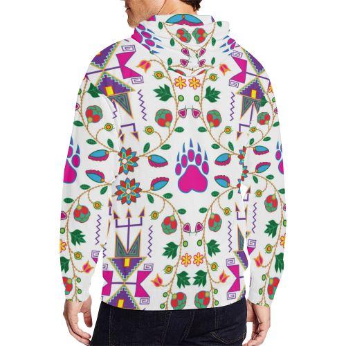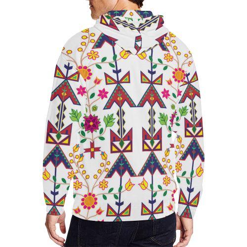 Floral Beadwork Four Clans White Full Zip Hoodie for Men