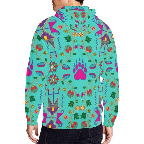 Floral Beadwork Four Clans Deep Lake Full Zip Hoodie for Men