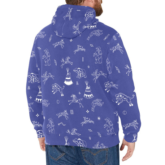 Horses and Buffalo Ledger Blue Men's Long Sleeve Fleece Hoodie