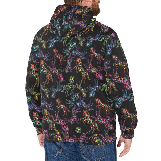 Neon Floral Horses Men's Long Sleeve Fleece Hoodie