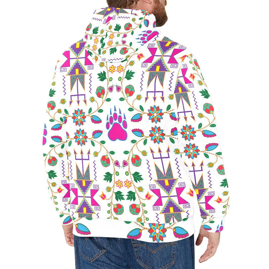 Floral Beadwork Seven Clans White Men's Long Sleeve Fleece Hoodie