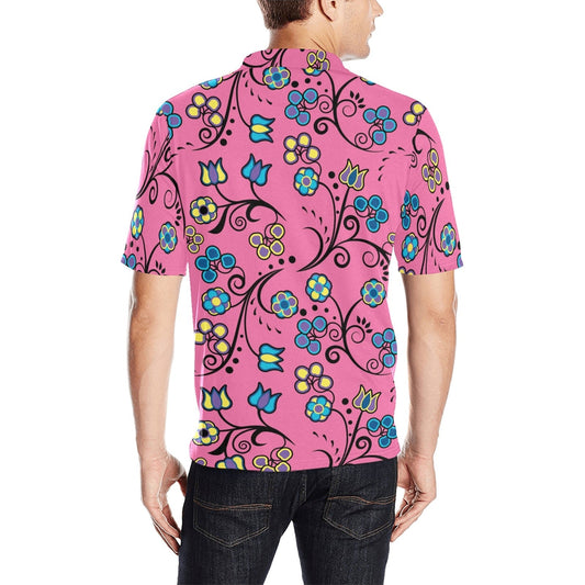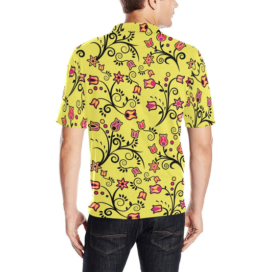 Floral Bearpaw Pink and Yellow Men's Polo Shirt