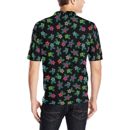 Berry Flowers Black Men's Polo Shirt