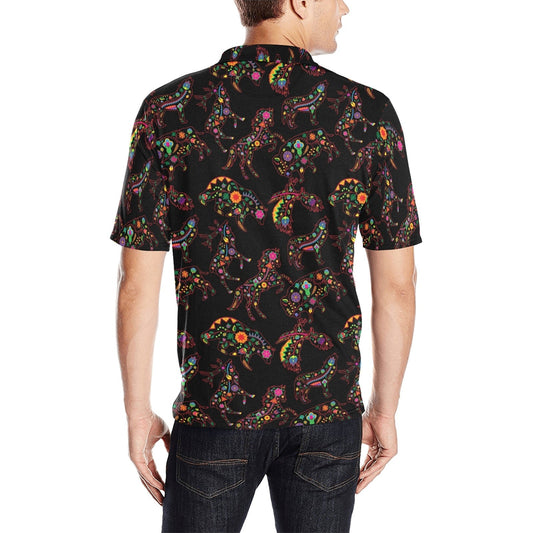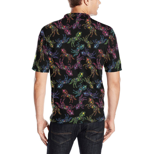 Neon Floral Horses Men's Polo Shirt