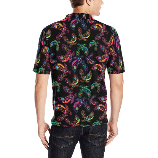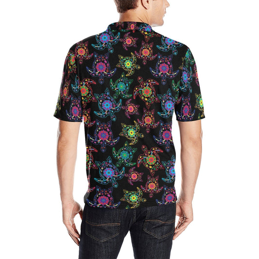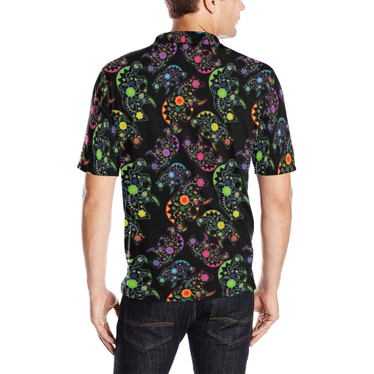 Neon Floral Turtle Men's Polo Shirt
