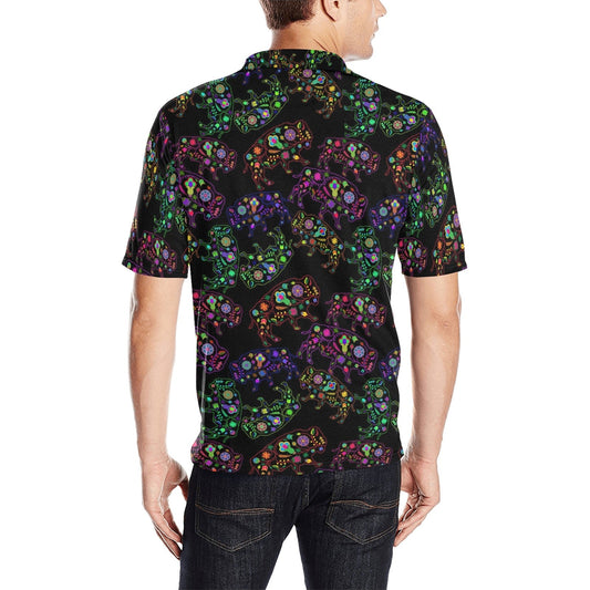 Neon Floral Bears Men's Polo Shirt