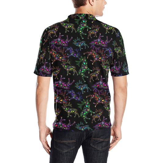 Neon Floral Elks Men's Polo Shirt
