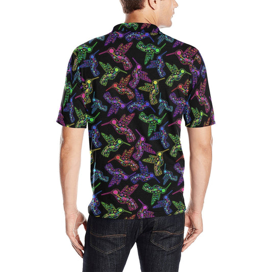 Neon Floral Hummingbirds Men's Polo Shirt