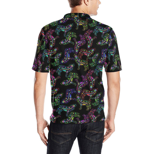 Neon Floral Wolves Men's Polo Shirt