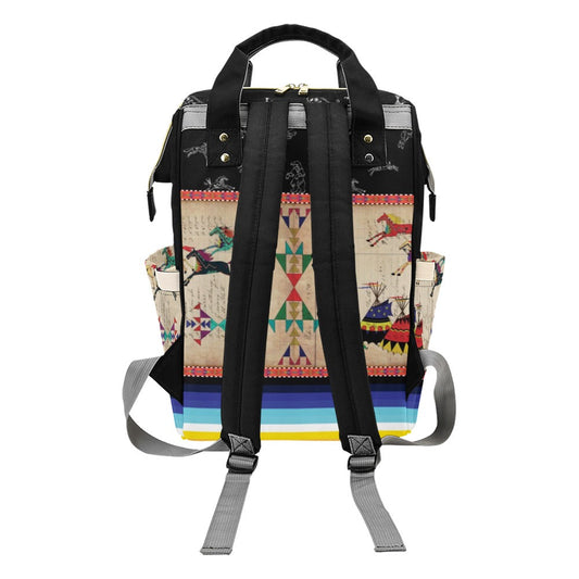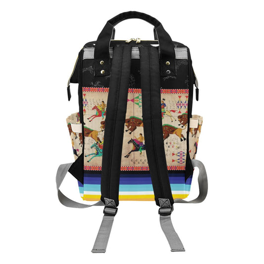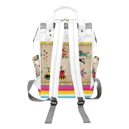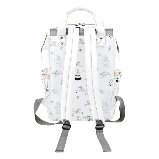 Horses and Buffalo Ledger White Multi-Function Diaper Backpack/Diaper Bag