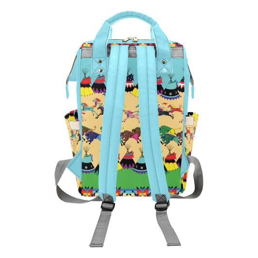 Horses and Buffalo Ledger Torquoise Multi-Function Diaper Backpack/Diaper Bag