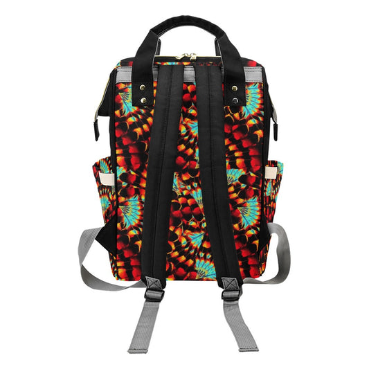 Hawk Feathers Fire and Turquoise Multi-Function Diaper Backpack/Diaper Bag