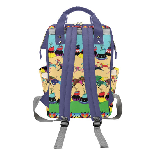 Horses and Buffalo Ledger Blue Multi-Function Diaper Backpack/Diaper Bag