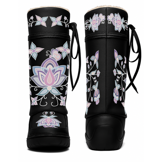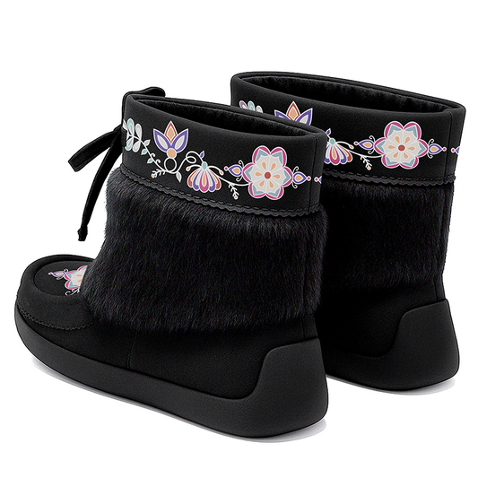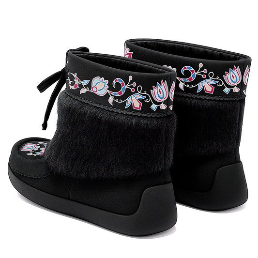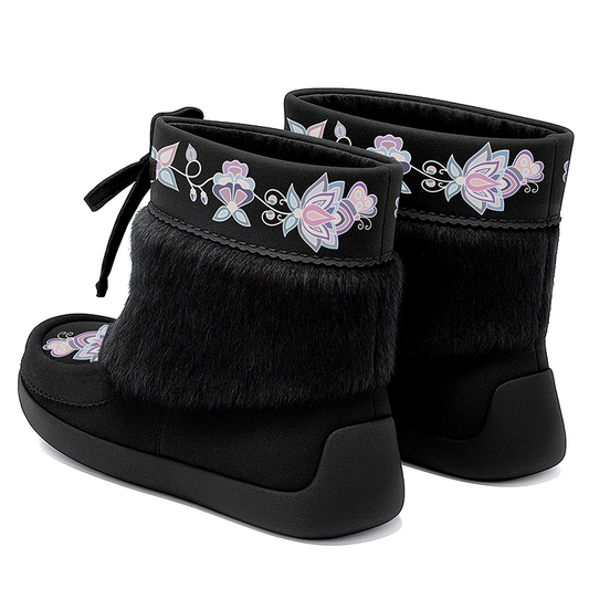 Regular price $139.54 CADRegular priceUnit price / perSale price $139.54 CADAurora Petal Glow Black Leather MocLux Ankle with Fur