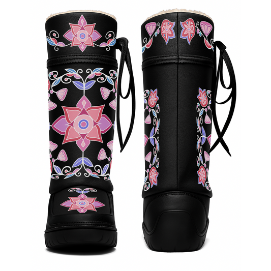 Frost Flower Circle Black Real Leather MocLux Tall