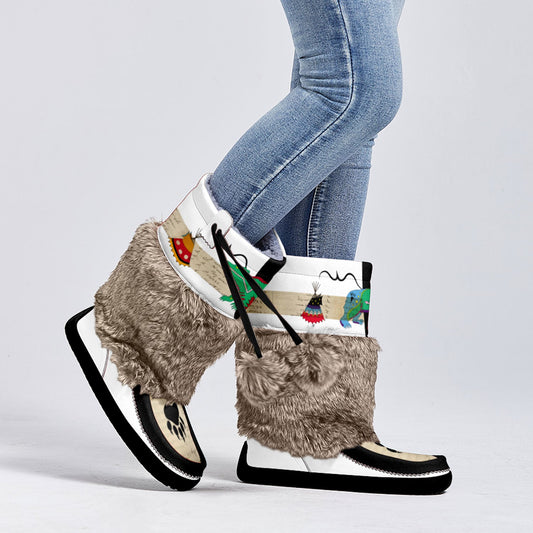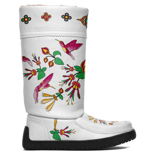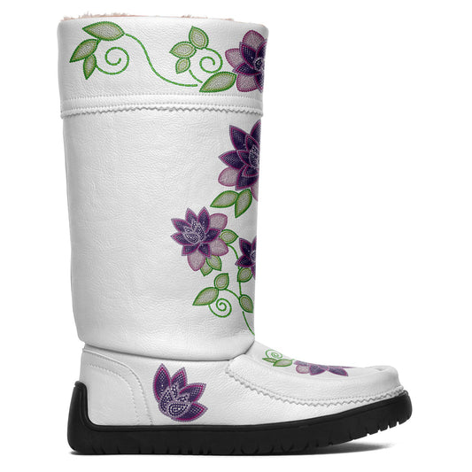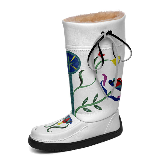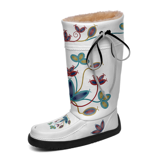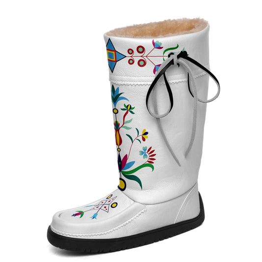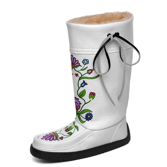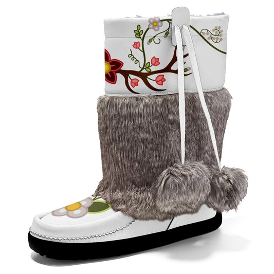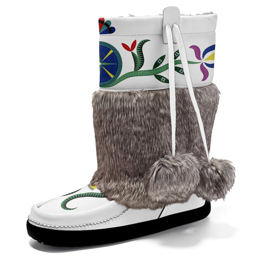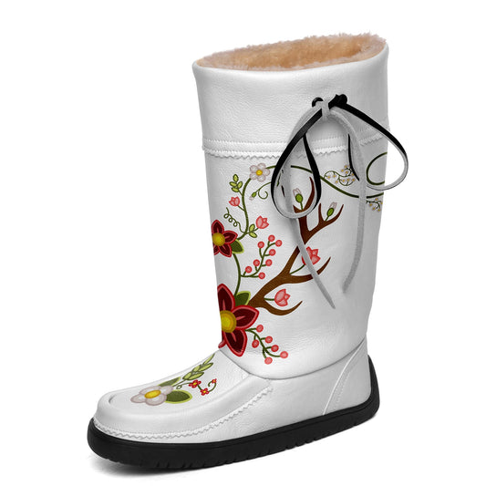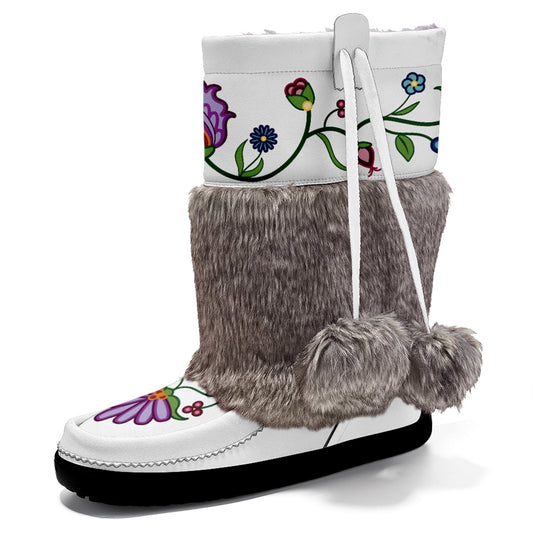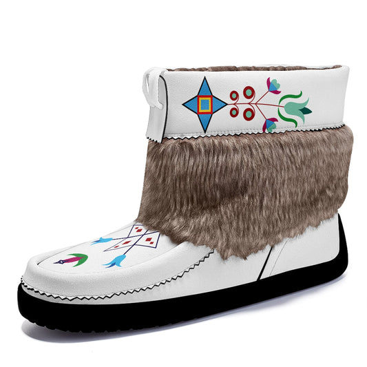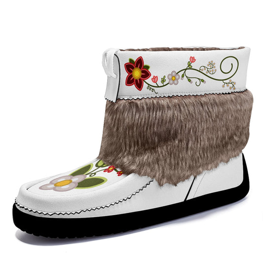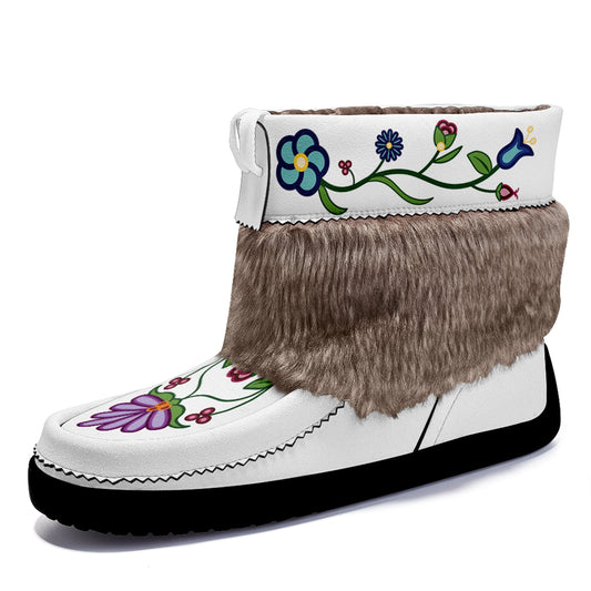 Floral Maskwa White Leather MocLux Short Style with Fur