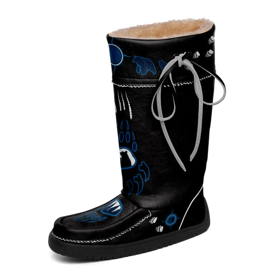 Bear Paw Blue Black Real Leather MocLux