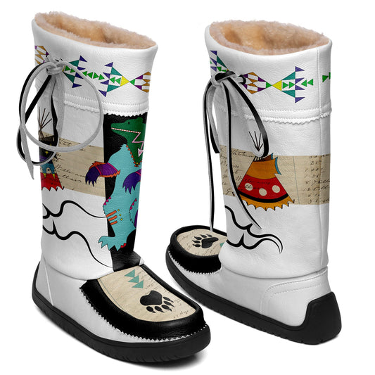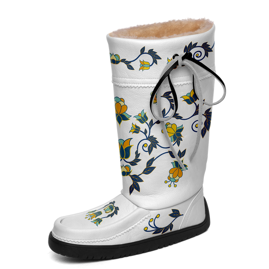 Regular price $125.40 CADRegular priceUnit price / perSale price $125.40 CADFloral Maskwa White Leather MocLux Short Style with Fur