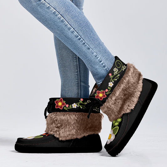 Winter Fire Black Leather MocLux Short Style with Fur