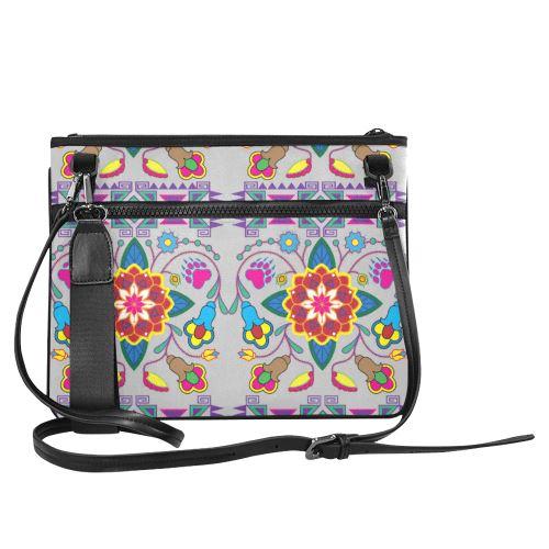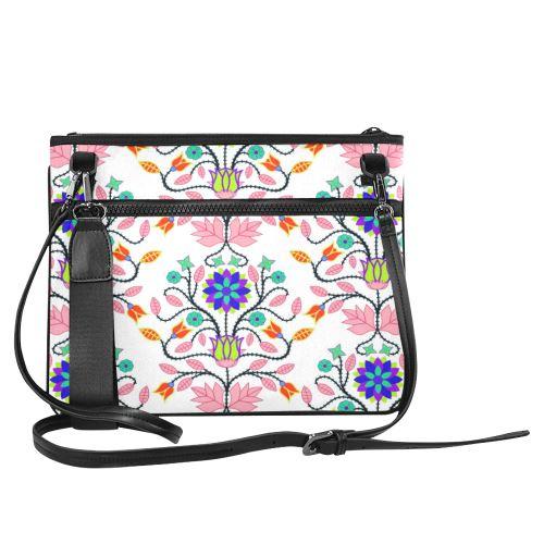 Floral Beadwork Four Clans White Slim Clutch Bag