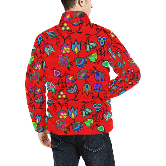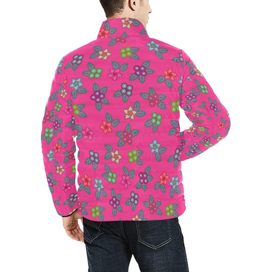 Berry Flowers Men's Stand Collar Padded Jacket