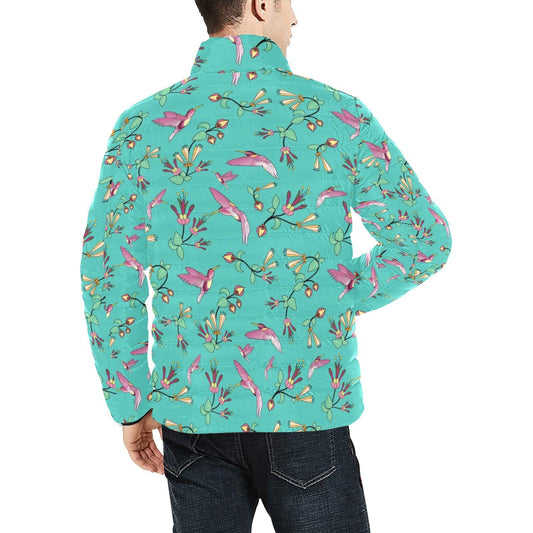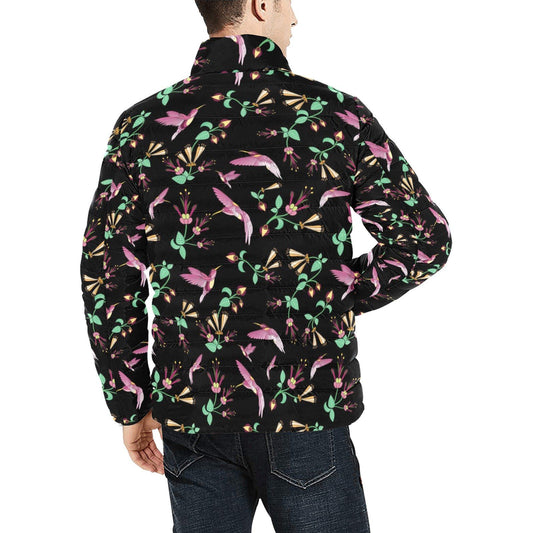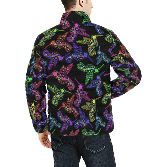 Neon Floral Hummingbirds Men's Stand Collar Padded Jacket