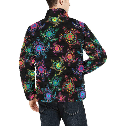 Neon Floral Turtles Men's Stand Collar Padded Jacket